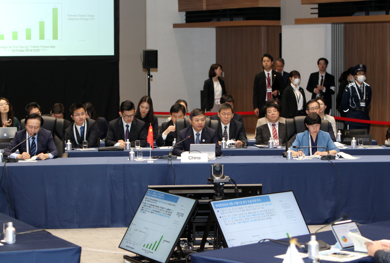 日本、韩国分别作了主旨发言。日方介绍了日本在应对气候变化、生物多样性保护、循环经济、海洋塑料垃圾、大气污染防治等方面工作进展及举措。韩方介绍了韩国在碳中和、大气污染防治、水环境治理、生物多样性保护、循环经济等方面政策及举措。