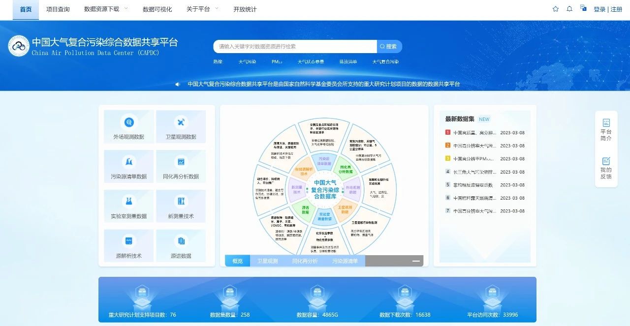 面向全球的、首个聚焦于中国大气复合污染的综合数据共享平台——中国大气复合污染综合数据共享平台(China Air Pollution Data Center, CAPDC)近日建成。
