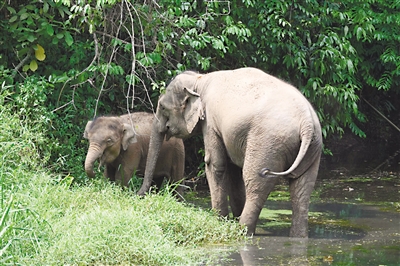 近年来,中国不断加强野生亚洲象栖息地保护,图为野生亚洲象正在丛林中漫步。 中国环境报记者邓佳摄
